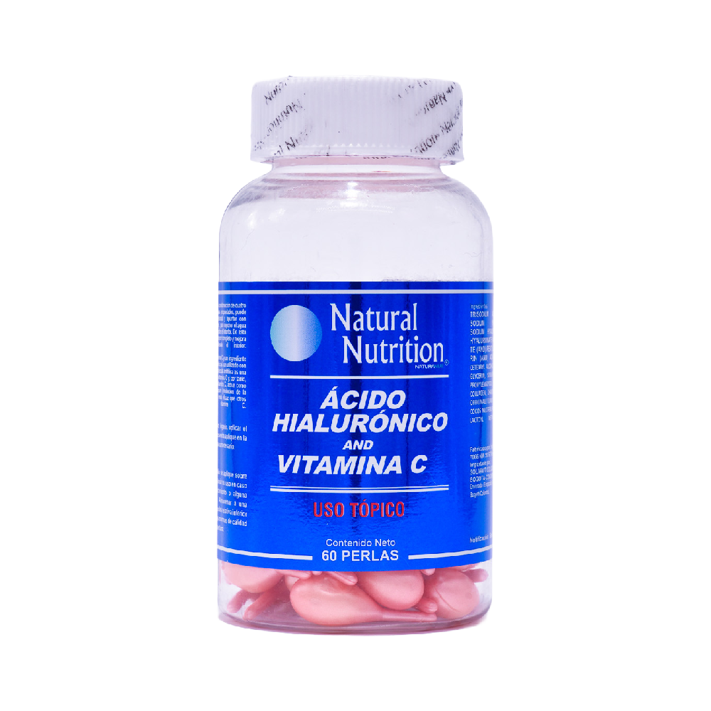 Ácido Hialurónico + Vitamina C en perlas es un cosmético de Natural Nutrition, ideal para sumar cuidado personal a tu rutina con una aplicación práctica y constante.