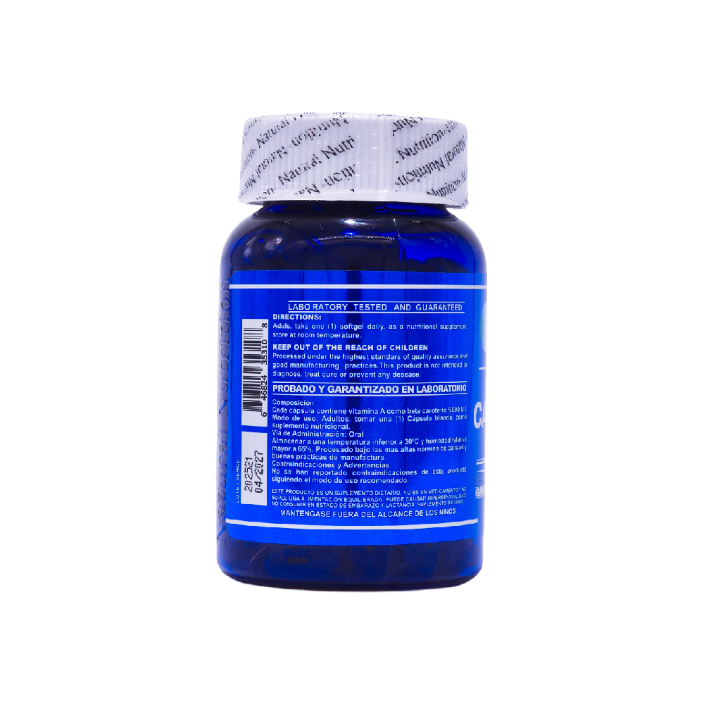 El Betacarotene Vitamina A 5.000 IU Natural Nutrition es un complemento de origen vegetal que aporta provitamina A, nutriente esencial para el mantenimiento normal de la visión, la piel y diversas funciones del organismo.