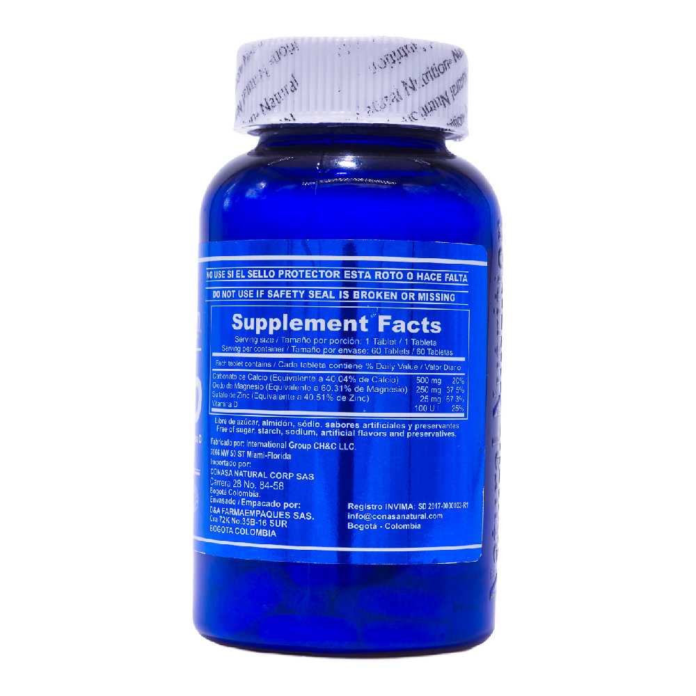 Calcio, magnesio y zinc con vitamina D: una combinación de nutrientes esenciales que contribuyen al mantenimiento de huesos y al funcionamiento normal del sistema inmunológico, acompañando tu bienestar día a día.