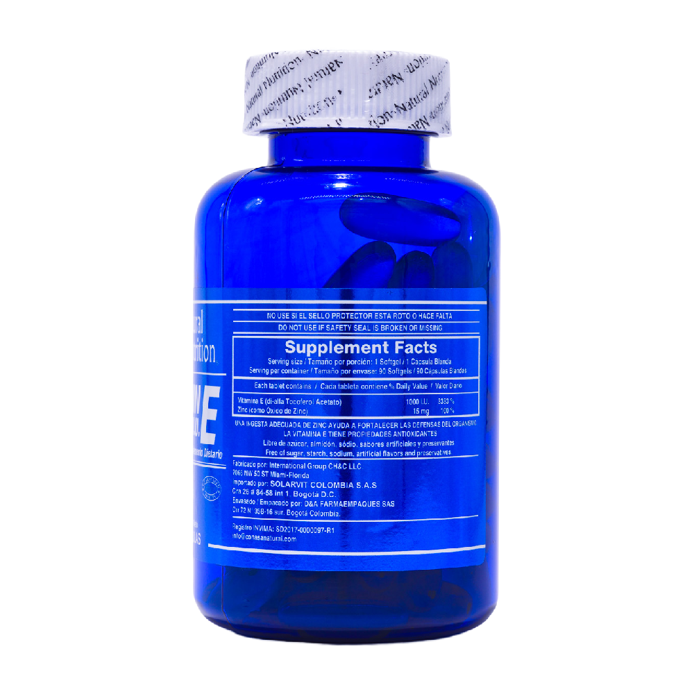 La Vitamina E 1000 UI Plus Zinc Natural Nutrition es una fórmula avanzada diseñada para acompañar el bienestar celular, la vitalidad general y el funcionamiento normal del sistema inmune. La Vitamina E es un nutriente reconocido por su acción antioxidante; que contribuye a la protección de las células frente al estrés oxidativo generado por los radicales libres, un proceso que puede verse influenciado por factores como la actividad física, la exposición ambiental, la edad o el estilo de vida.